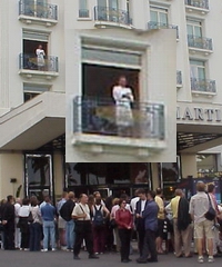 Un palace autrefois envahit par Canal +. Des badauds en bas qui espèrent croiser une star, la voir de près, pour mieux la critiquer. Et puis un gus en haut, en robe de chambre, au deuxième étage, qui crâne, qui frime, qui s'exhibe. Pathétique, non?
