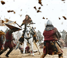 Richard meurt au combat et les troupes le déserte. Pas un hasard de circonstances, Robin Longstride et quelques compagnons tombent sur une embuscade dirigée par Godefroy, proche du prince Jean, mais aussi traître servant le Roi de France. Robin réussit à blesser Godefroy, et se retrouve avec la couronne royale à ramener en Angleterre. Surtout le Chevalier Loxley, mourant, lui confie une épée qu'il doit rendre à son père, à Nottingham.