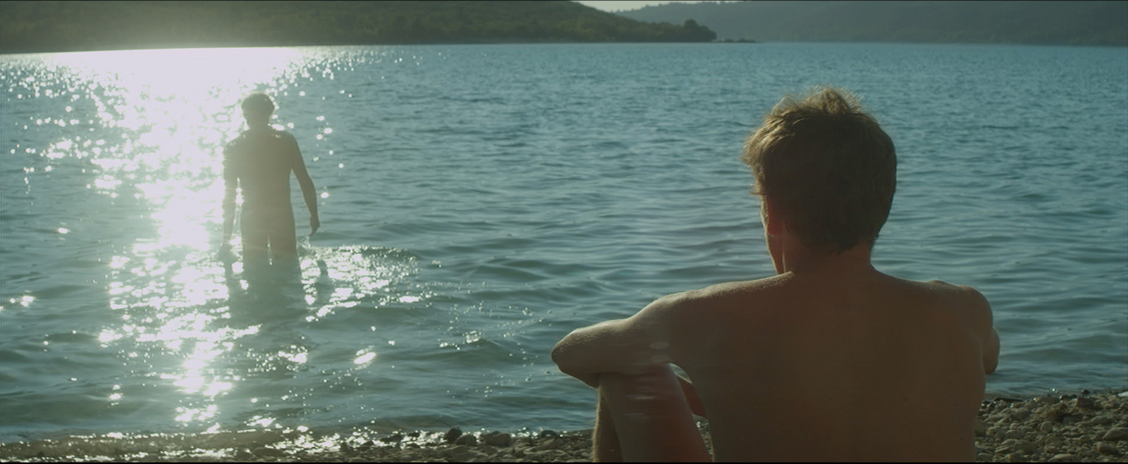 On est donc prévenu : le film ne questionne pas plus le naturisme que l’homosexualité. Il se situe juste dans ce contexte particulier, concentré dans les abords du lac qu’il ne quitte d’ailleurs à aucun moment, laissant hors champ la "vraie vie" des baigneurs, dont on sait au final peu de choses. Ce décor unique pourrait être étouffant ou artificiel, malgré les différents espaces qui le composent, de la plage de galets à l’eau du lac, en passant par le parking et les fourrés. Mais ce serait compter sans la végétation et le soleil qui semblent l’étendre à l’infini. D’ailleurs, puisque l’on ne connaît pas les frontières de ce petit paradis caché, il donne peu à peu l’impression d’occuper tout l’espace disponible, voire de représenter la réalité dans sa globalité.