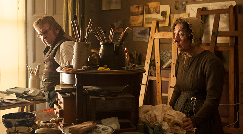 L’homme est hypersensible, incapable d’exprimer ses sentiments. Il prend son crayon ou son pinceau pour traduire ce qu’il vit. Il peut être répugnant, grognant comme un cochon sauvage quand il est mécontent, perdu comme un enfant, fascin� par le danger, prodigieux avec les couleurs, curieux du progrès. Timothy Spall a la tronche de l’emploi. Un côt� Tati avec son parapluie. Il s’efface derrière le rôle et reste constant au fil du temps, jusqu’à la déchéance totale, cocktail fatal d’alcool et de maladie. Il s’éteint avant que son époque ne lui échappe, avant que son art ne soit plus � la mode.
