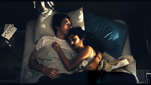 Pourtant, il y a toujours une variante. Paterson (Adam Driver, qui joue en finesse un rôle où toute sa vie semble se vivre à l’intérieur de lui-même) se réveille à chaque fois un peu plus tard. Il y a des événements qui modifient le cour tranquille et régulier de ses journées, constamment les mêmes : réveil, écriture, job, écriture, diner, promenade du chien, bière au bar, … Un jour sans fin.